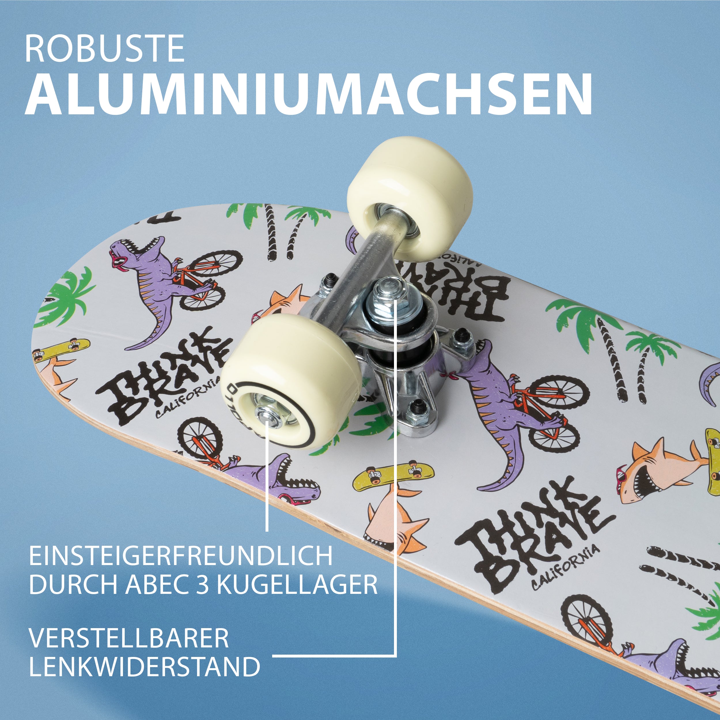 HOCHWERTIG! Kinder Skateboard Deck aus mehrlagiger Holzkonstruktion, Aluminium Skateboard Achsen, ABEC3 Kugellager - Top Qualität für alle kleinen und größeren Skater, die mal ordentlich durchstarten wollen.