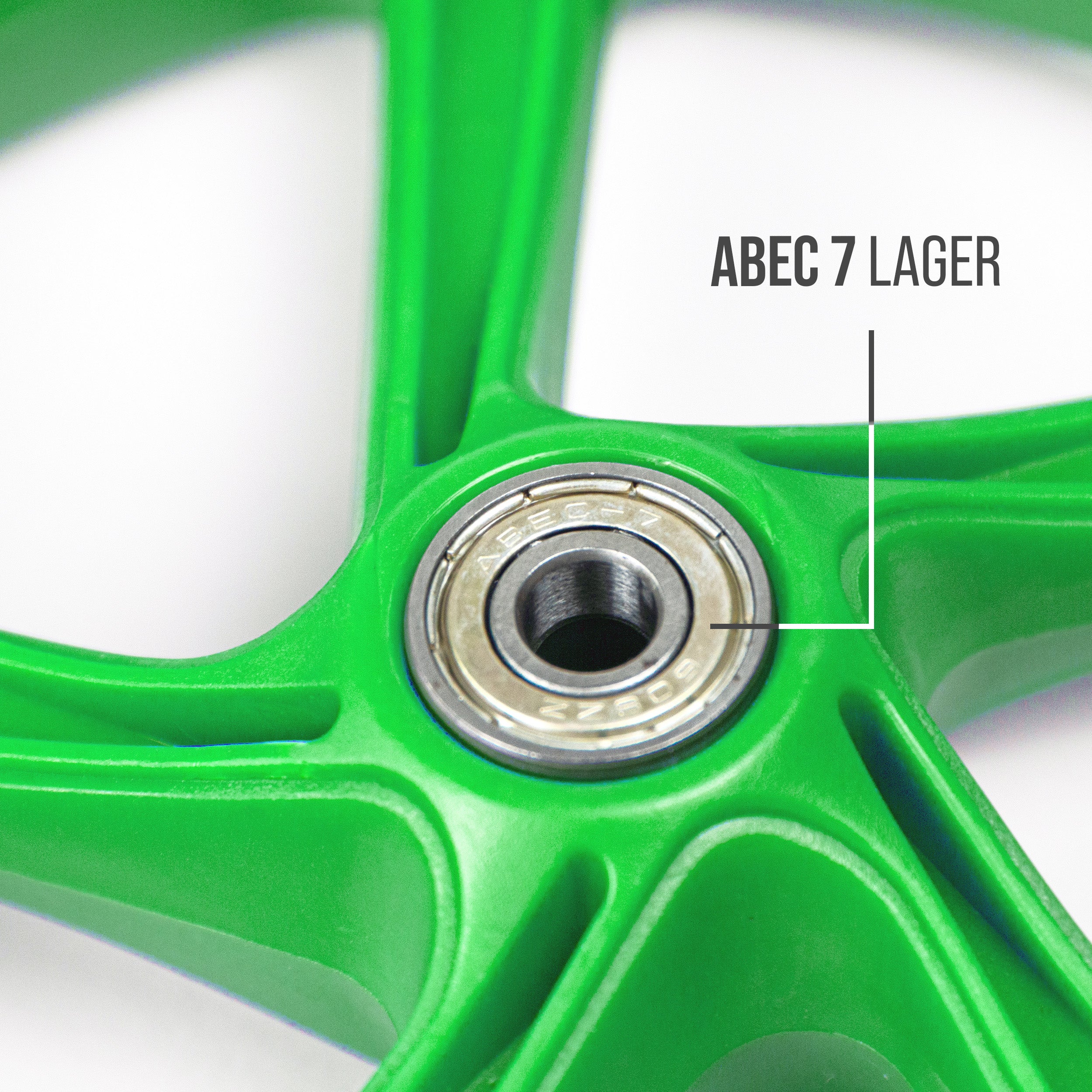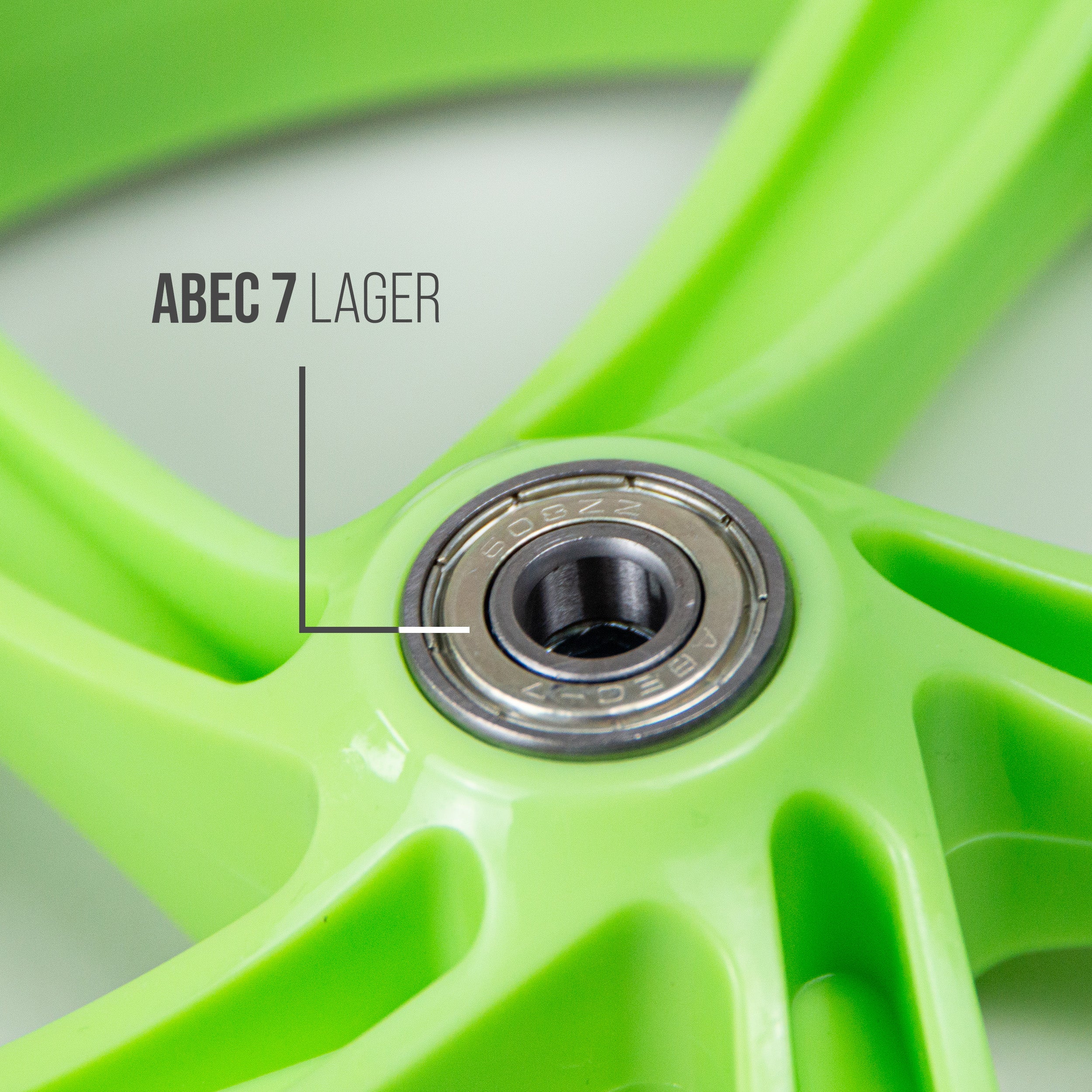 Durch Polyurethan High Rebound Rollen und ABEC 7 Kugellager fährt dein Big City-Scooter besonders präzise und ruhig.