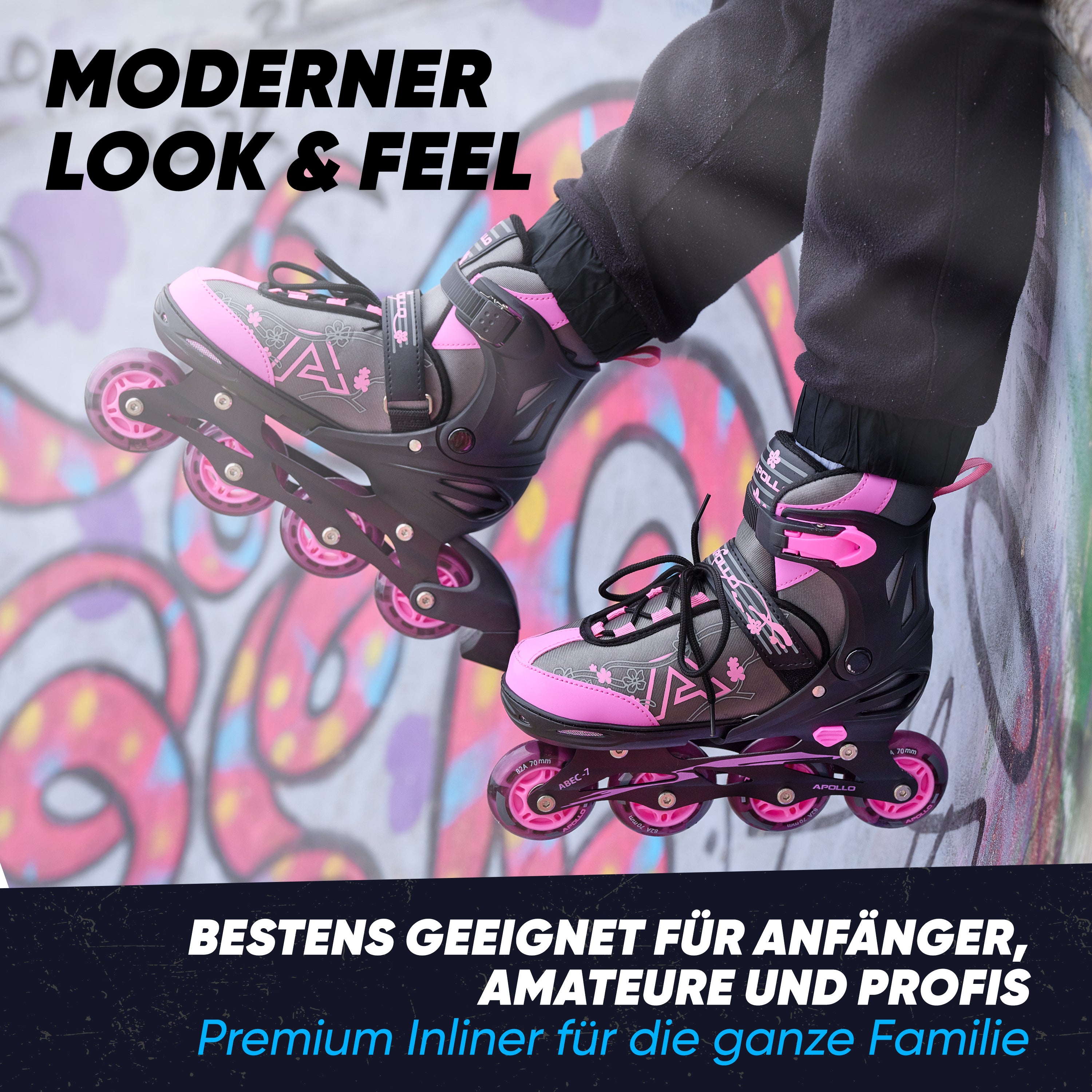 INLINER FÜR JUNG UND ALT: Apollo Inline Skates in den Größen 31-42 sind leicht und robust, haben weiche Softboots mit optimierter Passform. Diese Roller Schuhe bieten ein perfektes Gleichgewicht zwischen Komfort und Style für Kinder und Erwachsene.