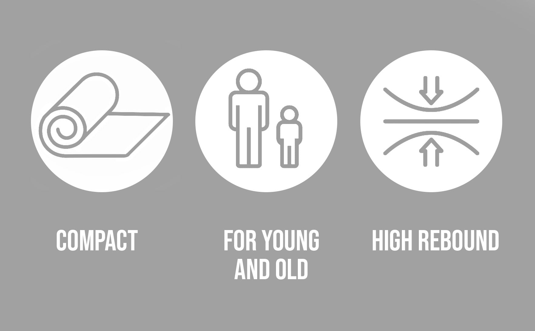 Kompakt verstaut, vielseitig einsetzbar und für jedes Alter geeignet: Die Air Mat Pro lässt sich platzsparend zusammenrollen, bietet sicheren Trainingsspaß für Jung und Alt und überzeugt mit hoher Rückfederung für dynamische Sprünge und flüssige Bewegungsabläufe.