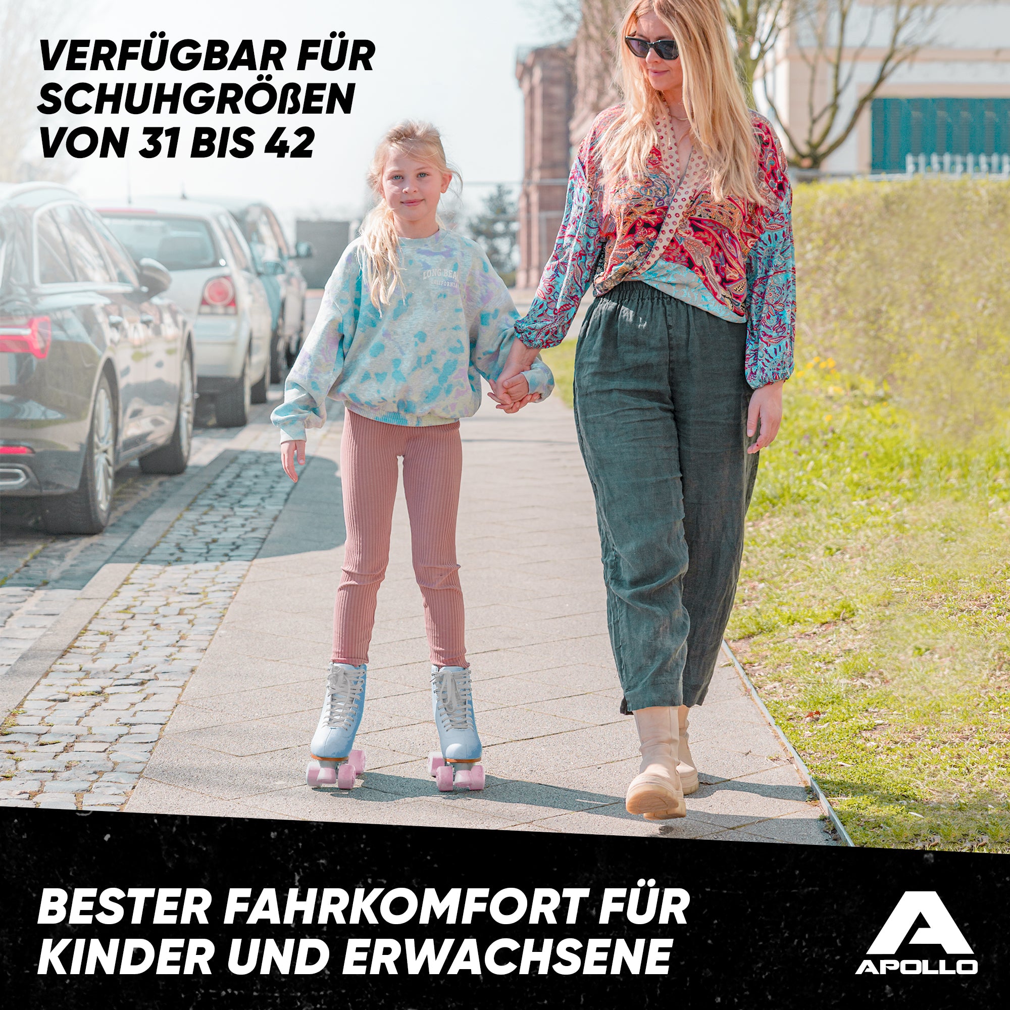 SCHICKES DESIGN: Skate für Kinder und Erwachsene im kultigen Retro-Look, farbenfroh oder dezent für jeden Geschmack. Insbesondere fallen diese Rollerskates Damen oft und gerne ins Auge.