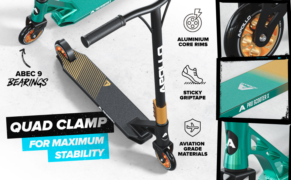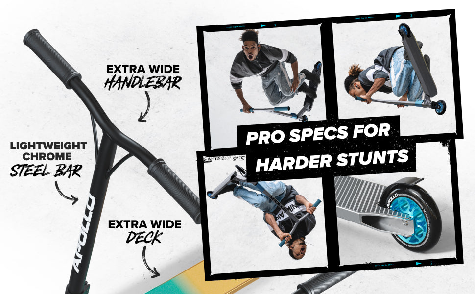 ROBUST & LEICHT: Apollo Genesis Pro X Kickscooter werden aus robustem HQ Aluminium gefertigt. Das Ergebnis: extrem stabile und leichte Scooter. So wird es schnell klar, dass der Stunt Scooter Kinder zu Höchstleistungen motivieren kann.