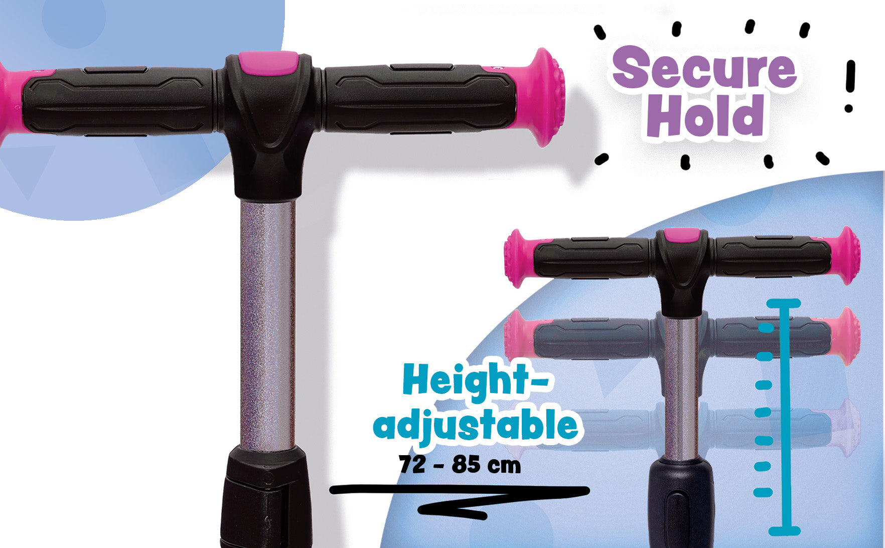 Der Lenker des KidsPro4 ist in drei Stufen höhenverstellbar (72–85 cm) und passt sich somit dem Wachstum des Kindes an. Die gummierten Griffe bieten einen sicheren Halt und ermöglichen eine präzise Steuerung.